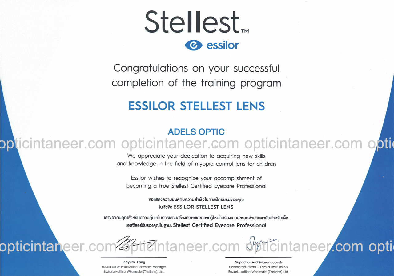 Essilor Stellest Certificate Eyecare Professional Tel : 082-915-4565
